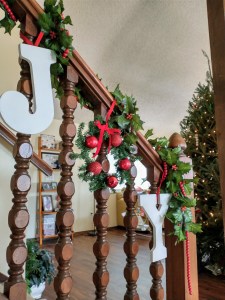 We are trying to keep things simple and cozy in the traditions we establish, focusing on togetherness and simple pleasures. It has been on our hearts how much of a struggle it will be for some families to celebrate this year, not only because of a pandemic advisement against travel, but also because of economic hardship. We look at our newborn, who won’t really “get” Christmas this year (beyond lights—she loves those) and our hearts hurt for parents who may struggle to get gifts for their children. In that spirit, we think it is best to keep our celebration modest—for the most part, making due with what we have, even though the tree skirt is too small and some of our lights burned out, etc. (Of course, we got each other alpacas for Christmas, so that feels pretty big!) We did get a real, tall tree, and Kasey invested in the supplies to make the JOY garland on the railing, an idea her mom found on Pinterest.