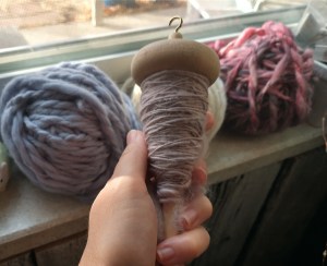 I eventually managed to spin three 2-ply 100 yd skeins of bulky weight yarn and I thought they turned out nicely. I know they are durable too, because I had to restart one knitting project three times due to some technical mistakes, and the yarn held up splendidly. Now, I am working on spinning thinner, more consistent yarn and finishing skeins so that they are not just usable, but saleable. A huge help in all of this was the book and DVD Respect the Spindle by Abby Franquemont and the Youtube channels MeganERisk Tutorials and JillianEve. I’m spinning every day now, for at least a few minutes and I’m enjoying it, which is a huge improvement from just a few months ago.