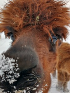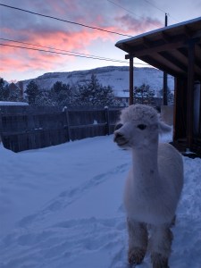 Luna kind of looks like her aunt, Theodora, who is Miss Firecracker’s half-sister. The herd was so excited when the new cria arrived and Miss Firecracker is a wonderful mother. Her temperament also changed a lot after she gave birth, she’s still not exactly outgoing, but she is much less aloof and seems vastly more comfortable. After a 50 week pregnancy, that figures.